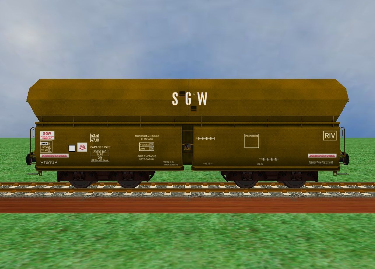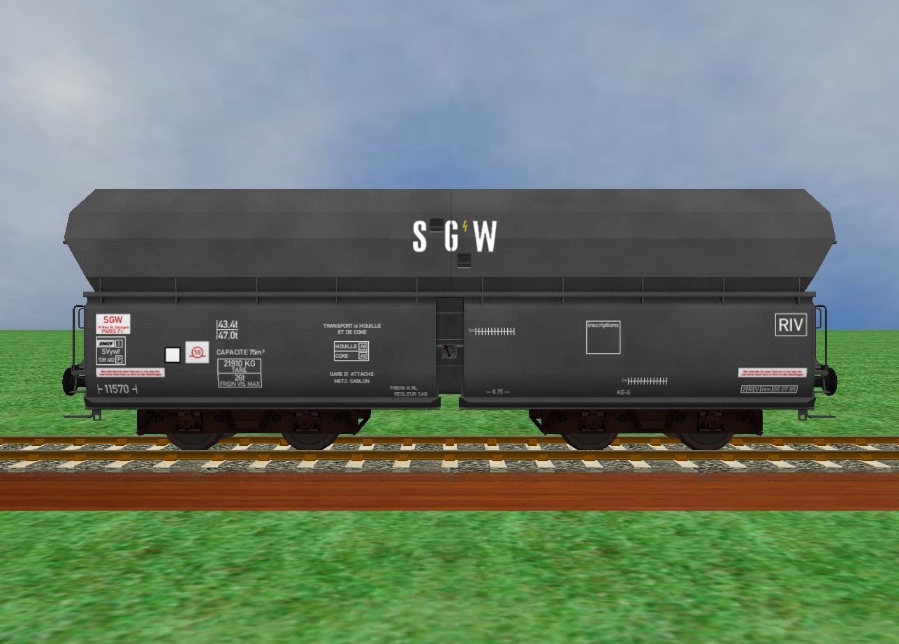 This package contains the two SGW self-unloading wagons that can be used to replace the original GR models. The incorrect color scheme of the second model is also replaced with a true-to-original one. The package with the wagons can be downloaded here.