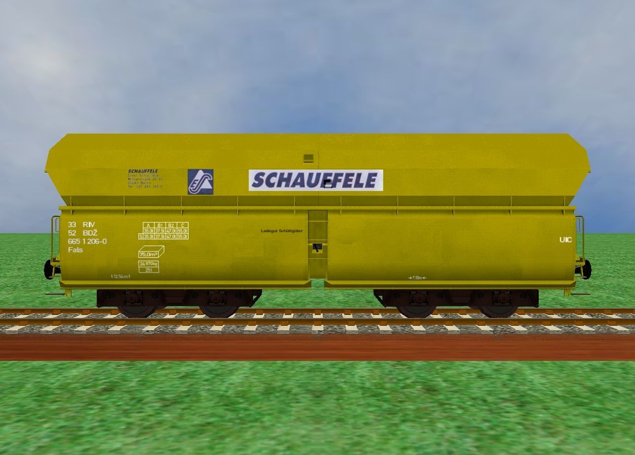 In diesem Paket ist ein Selbstentladewagen der Firma Schauffele der Epoche VI enthalten. Das Paket mit den Waggons kann hier heruntergeladen werden.