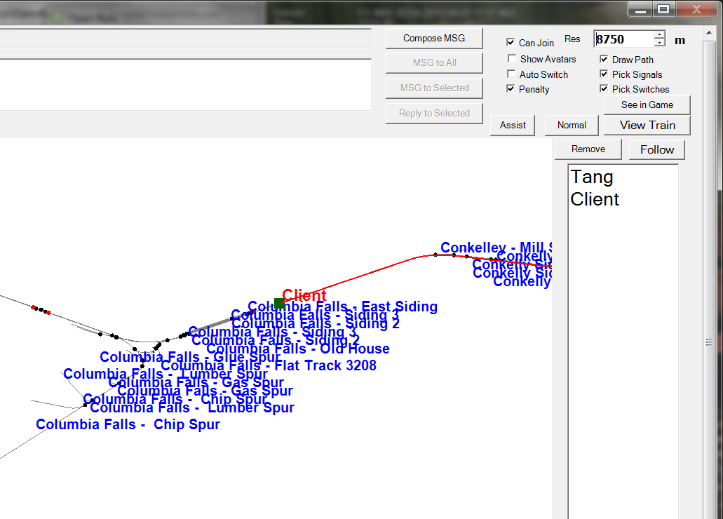 Ein Spieler beginnt als Dispatcher (aus Netzwerksicht kann sein Computer, wie oben erläutert, ein Netzwerk-Client oder ein Netzwerk-Server sein), und die anderen beginnen als Standardspieler. Sie sind immer Netzwerk-Clients und werden deshalb auch einfach Clients genannt. Jeder Spieler (einschließlich des Dispatchers) wählt und bedient seinen eigenen Verband (und seine Lokomotive), kann aber auch springen, um die Verbände anderer zu beobachten, oder sich mit anderen zusammenschließen, um als Anführer und DPU auf einer schwierigen Route zu fungieren oder sogar als Dispositionshilfe zu fungieren zur manuellen Steuerung von Signalen und Schaltern.