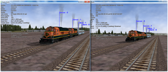 Locations of trains from other players are sent over the Internet. Because Internet routings vary moment to moment there may be some lag, and trains may jump a bit as OpenRails tries to update the locations with information received.