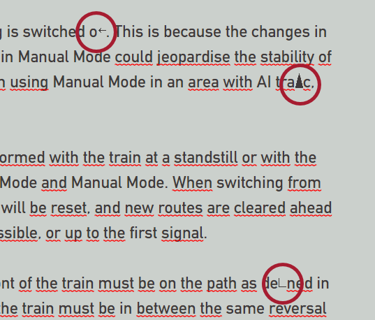 I hope to have finished translating the manual by the end of May. Of course, in the future I will check the individual main chapters in all languages for errors that I have overlooked. This applies in particular to an incorrect display of the font that came about by copying the text from the operating instructions using Acrobat Reader. When copying and pasting, the letter combinations ff were represented by a left arrow, ffi by a black triangle and fi by an angle, see the image.